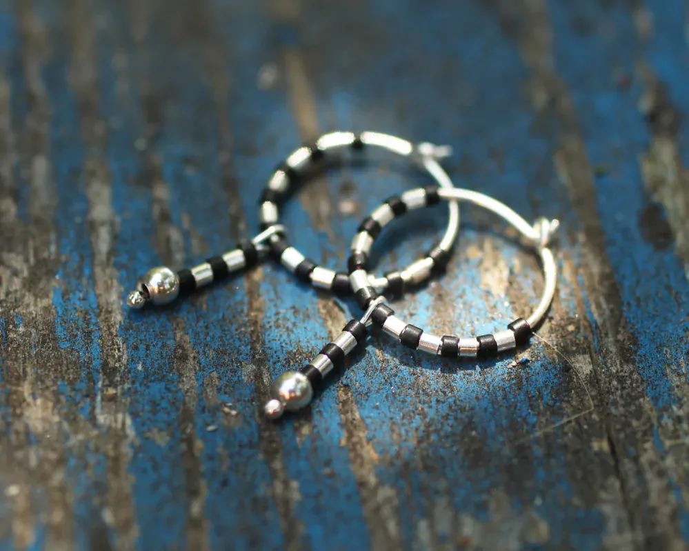 Protože černá je dobrá a navíc prudce elegantní a nadčasová. Náušnice s japonskými skleněnými korálky v černém matu a s promyšlenými detaily z korálků ze stříbra 925/1000. Náušnice můžete také doplnit o náhrdelník a náramek ve stejném stylu.