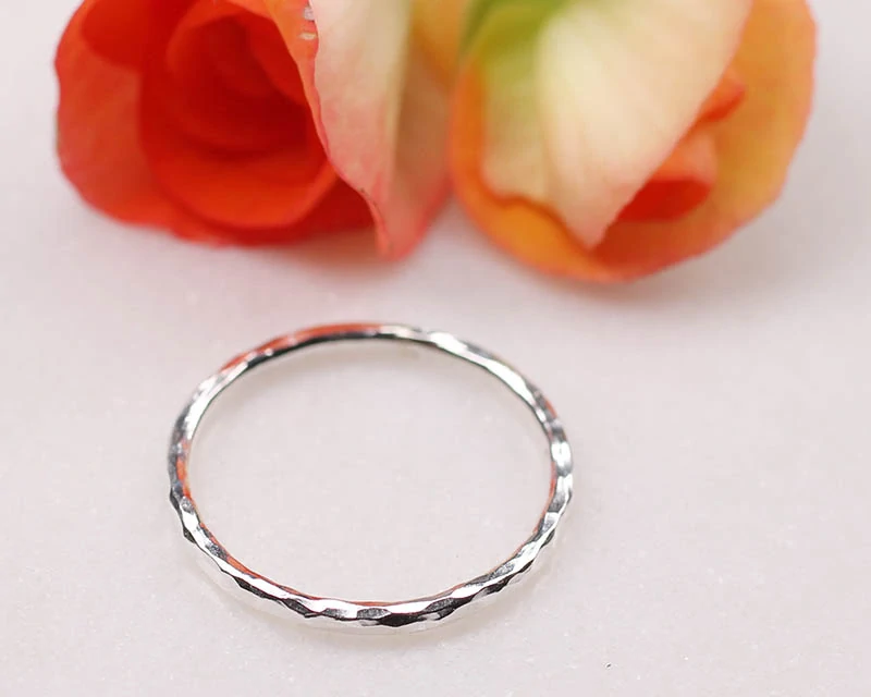 Prsten vyrobený ze stříbra 925/1000, tepaný. Je krásný samostatně, nebo i v několika kroužcích na jednom prstě. Protože jde o ruční tepání, je každý prstýnek originál.